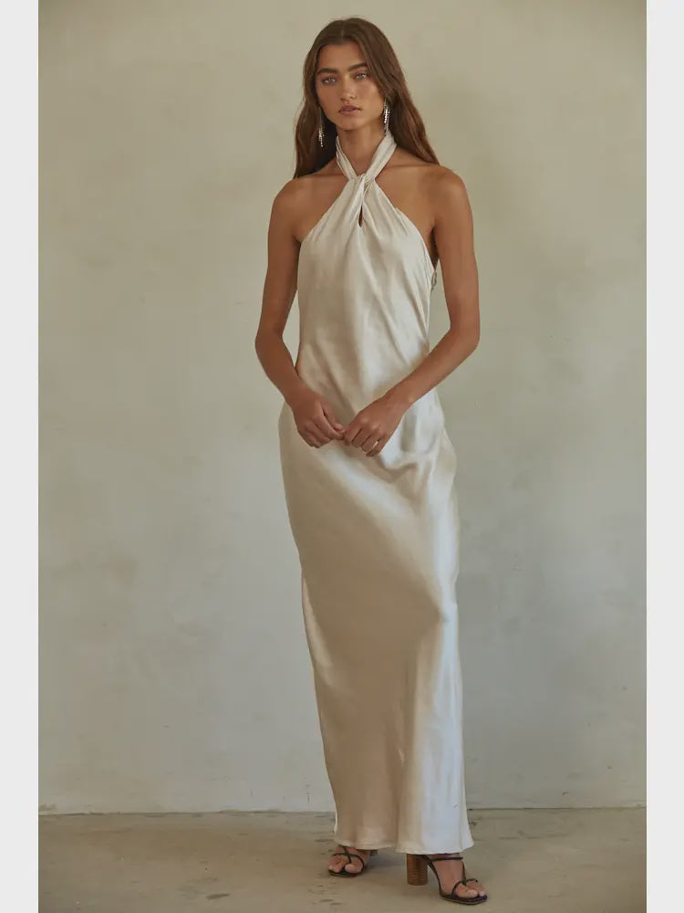 White Rosette Detail Cut-Out Ruffled Maxi Dress