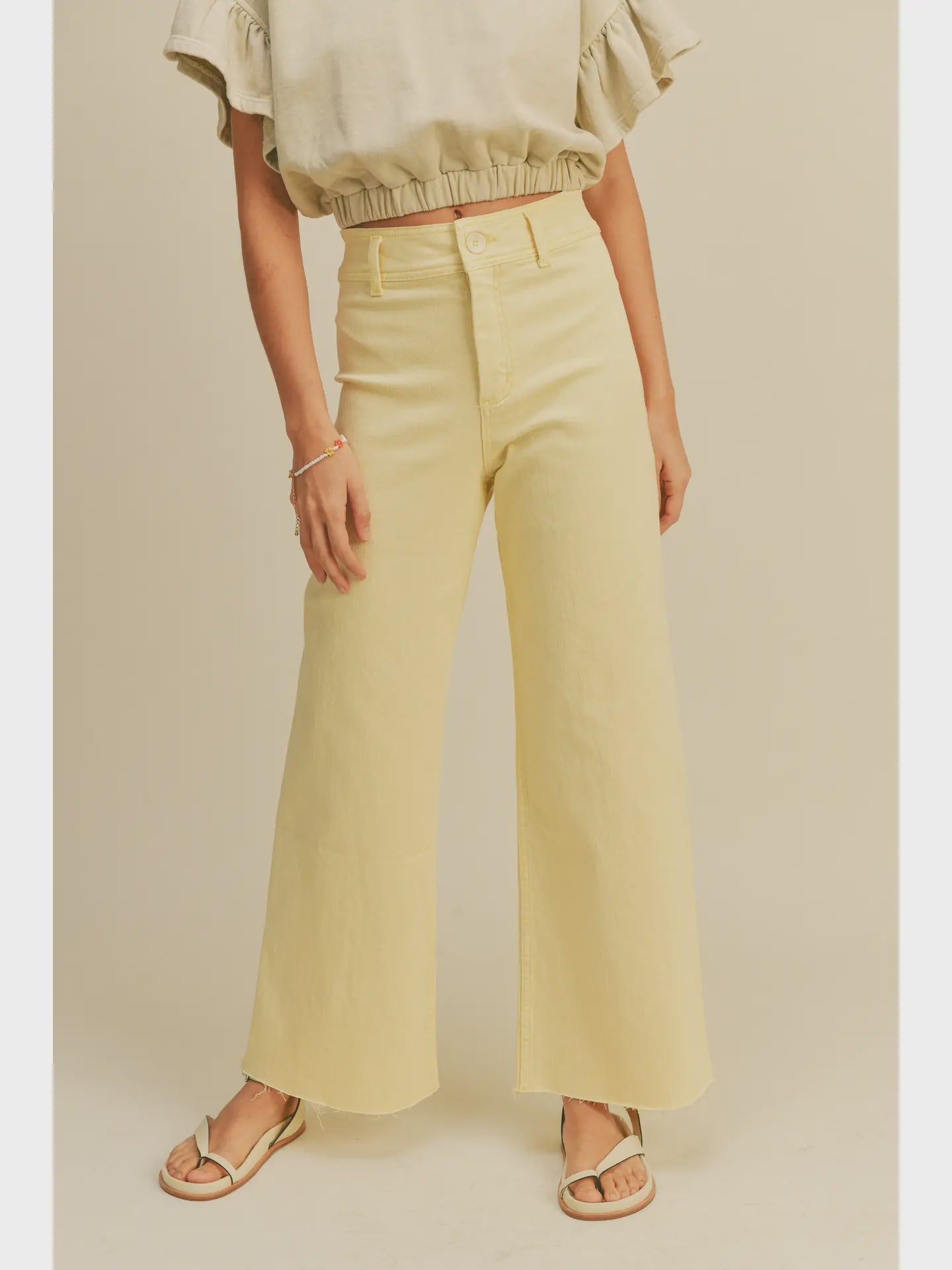 Cream Straight Wide Leg Denim Pants