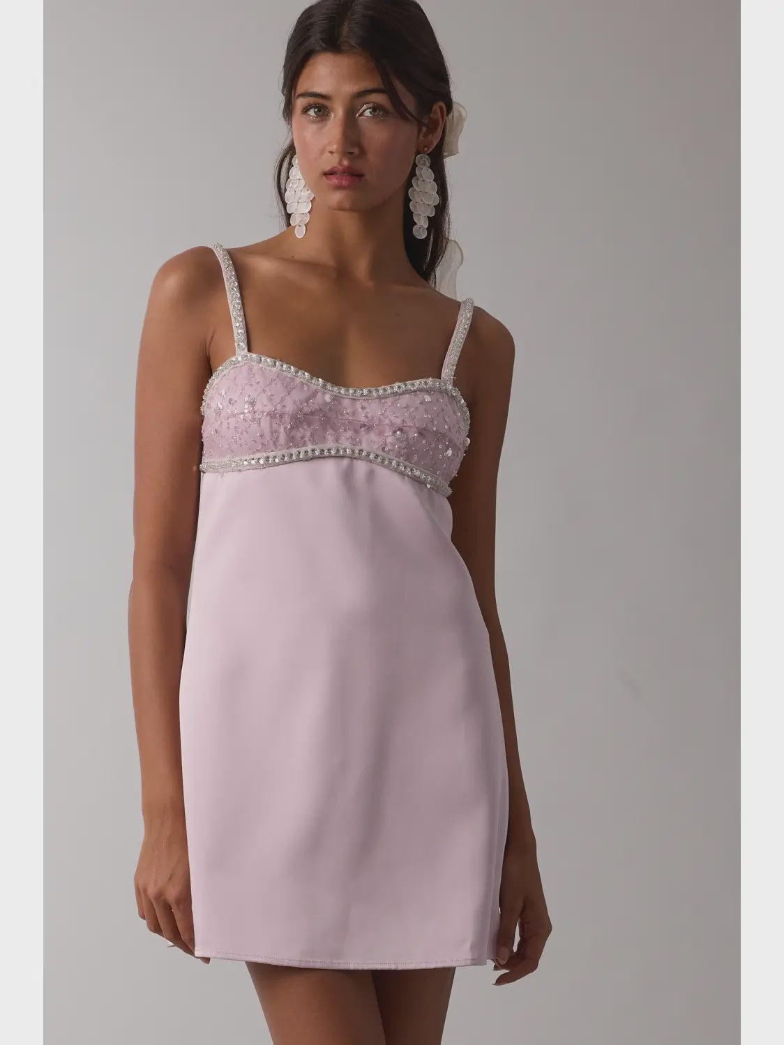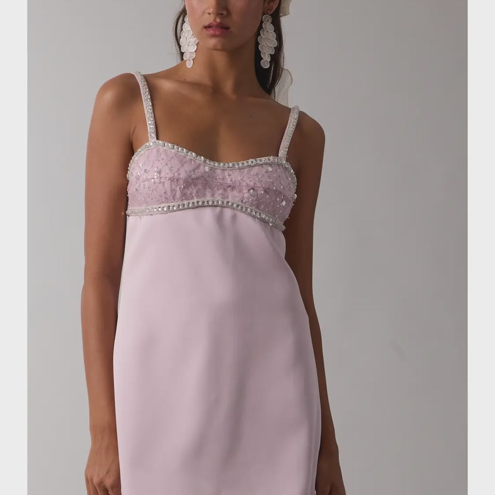 Orchid Lavender Jeweled Bust Point Soft Color Plain Mini Dress