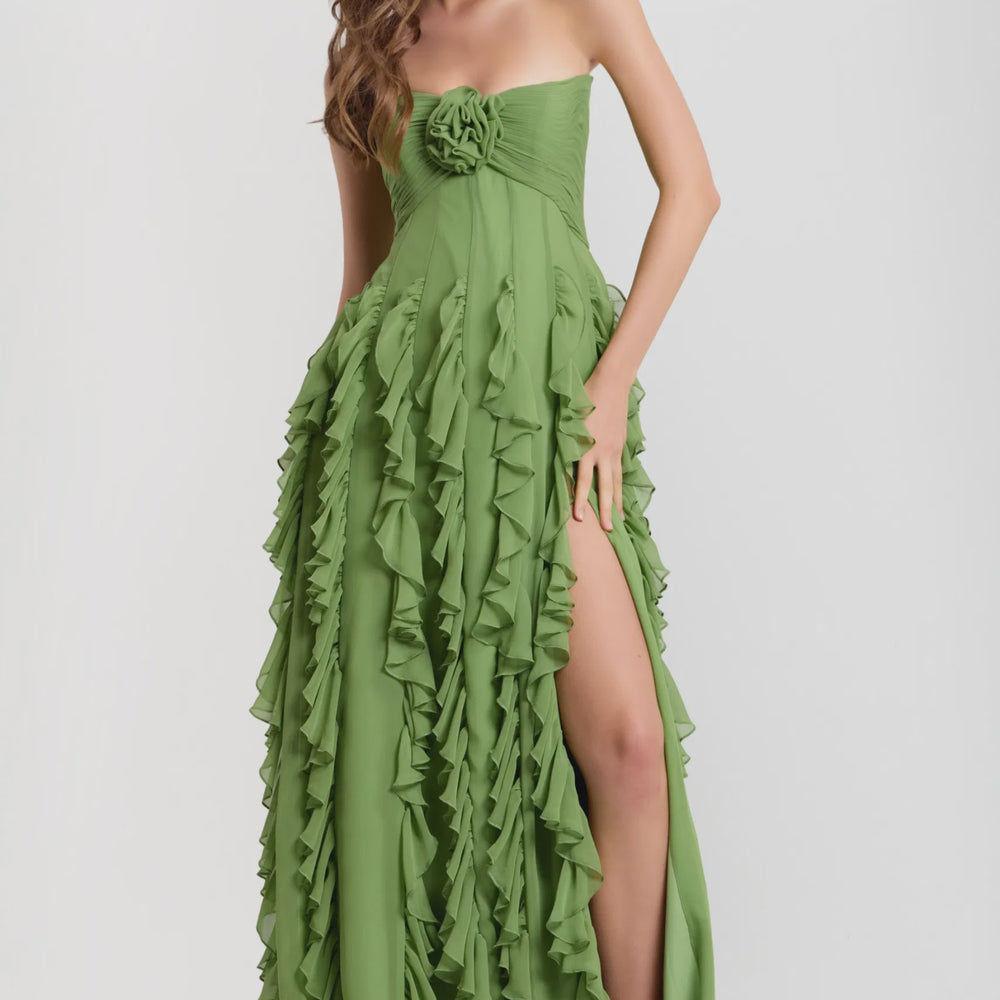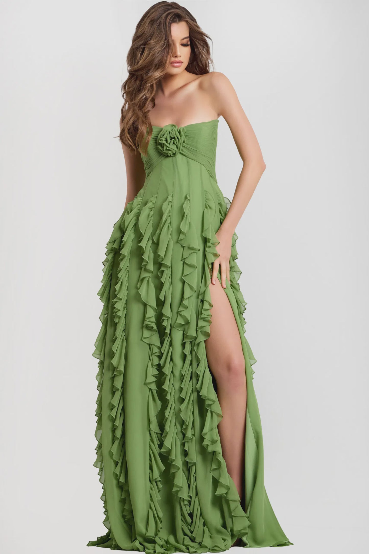 Jovani 46379 Light Green Size 4 Strapless Ruffled Chiffon Gown With Floral Detail