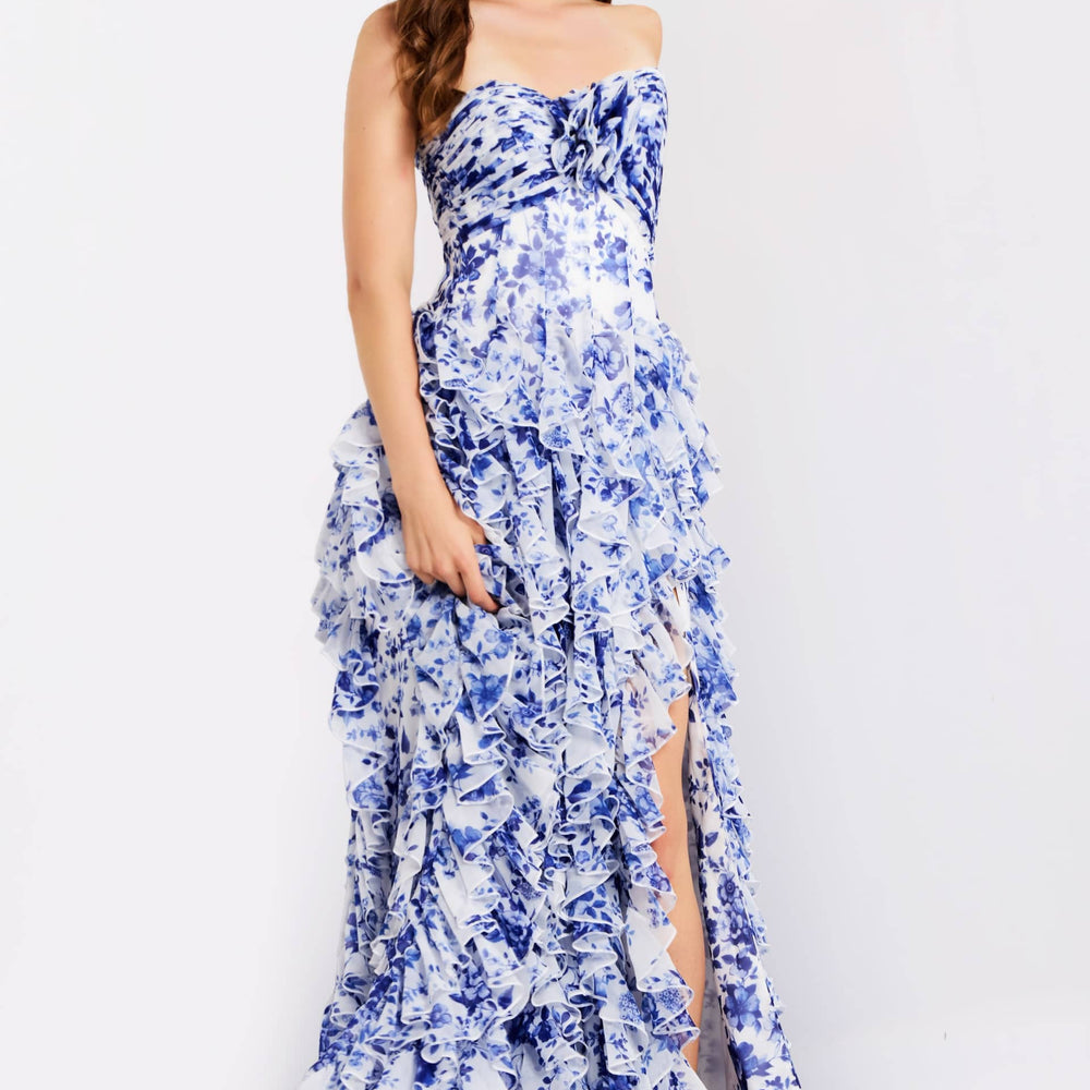 Add Jovani 46380 White/Blue Strapless Size 8 to the cart