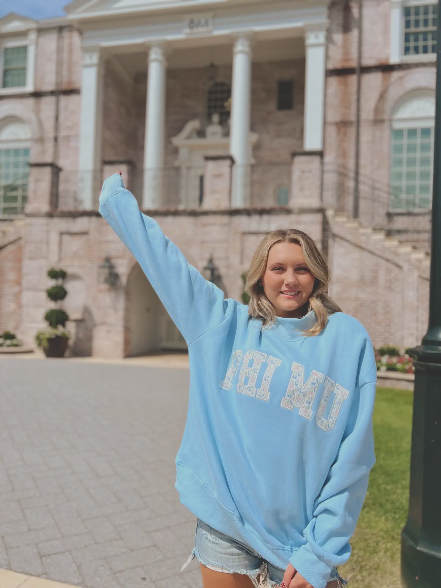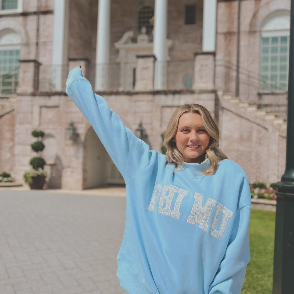 Greek Floral Embroidered Mock-Neck Sweatshirt