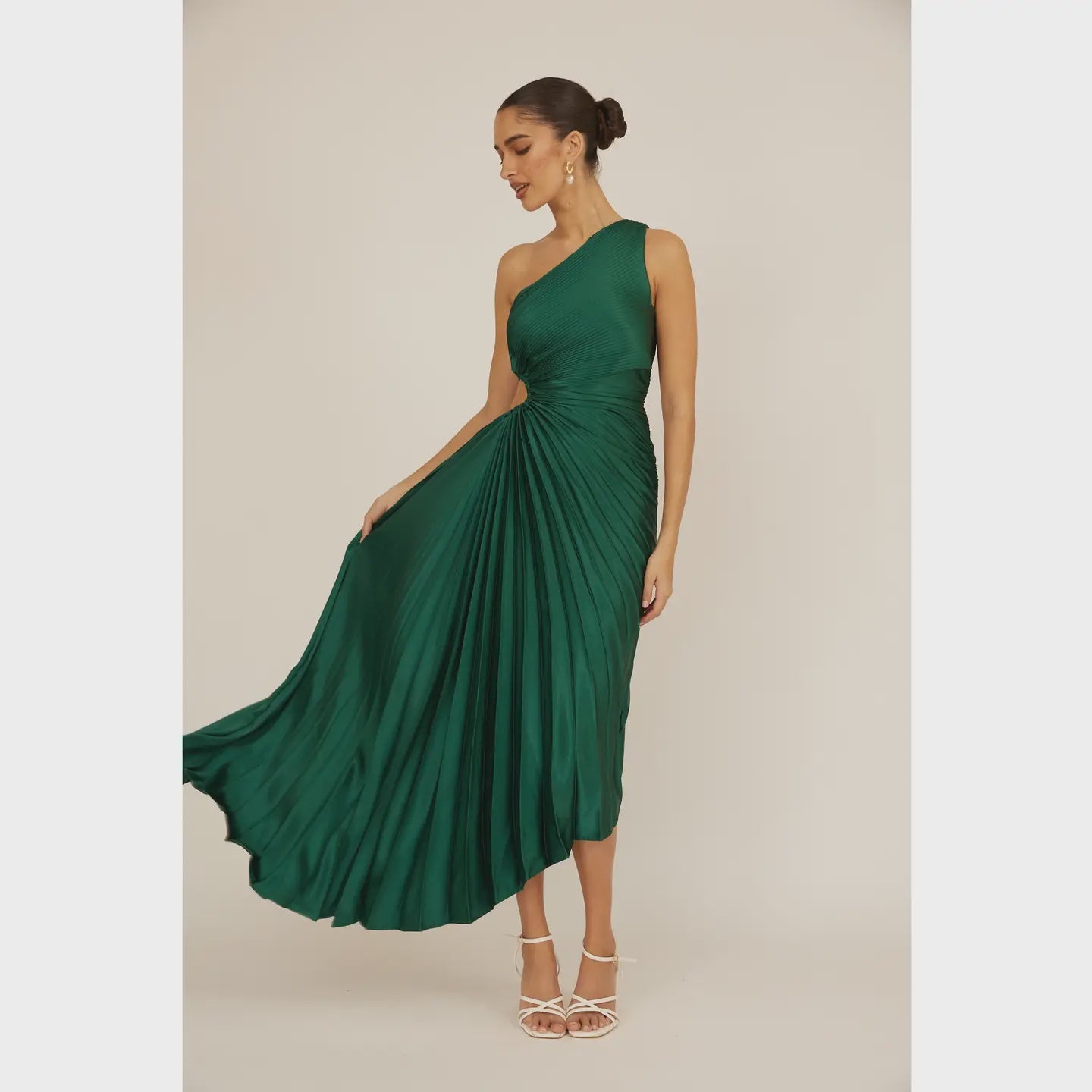 Kelly Green One Shoulder Accordion Midi Dress