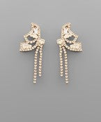 Gold/Clear CZ Butterfly And Tassel Earrings