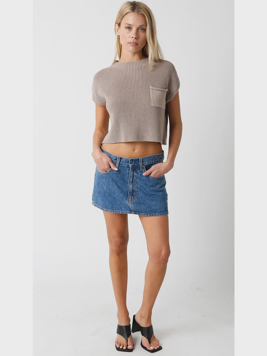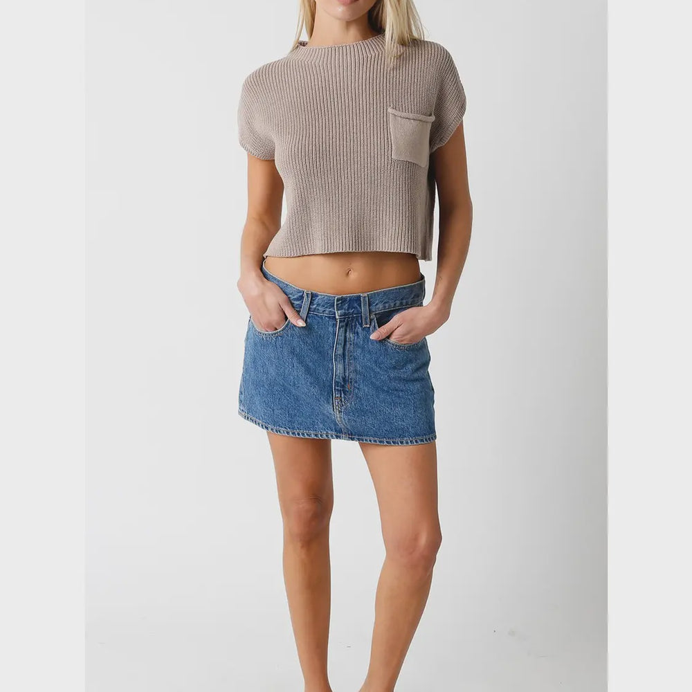 Taupe Taylor Top features a round neck and a short sleeve Knit.