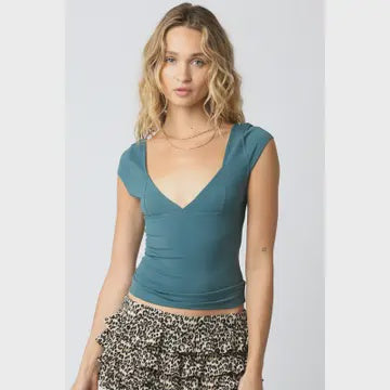 Yellow Ribbed Cap Sleeve Bodycon Tee