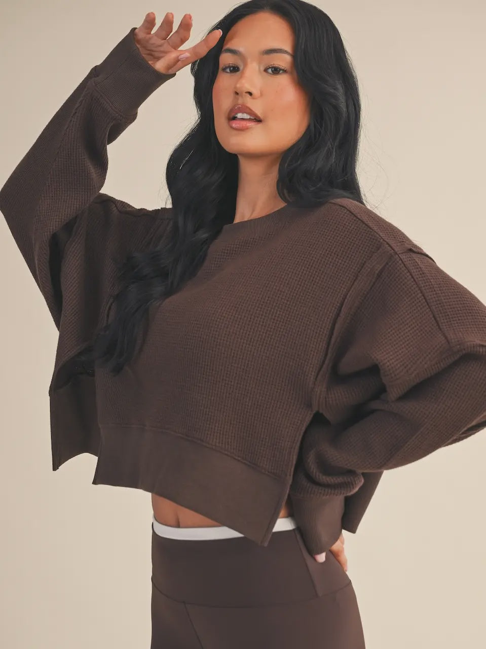 Chocolate Waffle Knit Oversized Long Sleeve Top
