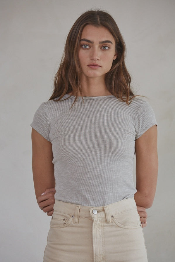 Light Grey Knit Ribbed Short Sleeve Bodysuit